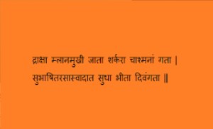 द्राक्षा म्लानमुखी जाता शर्करा चाश्मनां गता | सुभाषितरसास्वादात सुधा भीता दिवंगता ||
