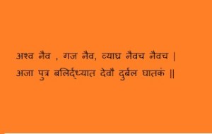 अजा पुत्र बलिर्द्ध्यात देवौ दुर्बल घातकं ||