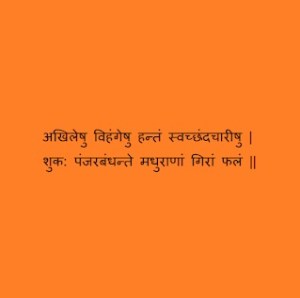 ‘shuk’ in sanskrit. When it is caged, he cannot eat sweet fruits from the trees on its own.
