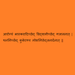 आरोग्यासाठी साक्षात भास्कराची उपासना करावी, विद्येसाठी श्री गणेशा ची उपासना करावी, धन संपत्ती साठी कुबेराची उपासना करावी तर मोक्षाची अपेक्षा असेल तर श्री विष्णू ची उपासना करावी.