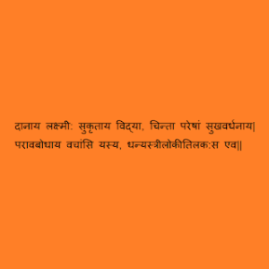 दानाय लक्ष्मी: सुकृताय विद्या, चिन्ता परेषां सुखवर्धनाय|