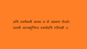 हे लक्ष्मणा, ही लंका सोन्याची जरी असली तरीही ती मला प्रिय वाटू शकत नाही कारण माझी आई आणि माझी जन्मभूमी ह्याच मला अधिक प्रिय आहेत.