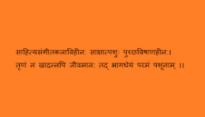 साहित्यसंगीतकलाविहीन: साक्षात्पशुः पुच्छविषाणहीन:।