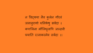 विद्येने गौरव प्राप्त होत नाही, वंशाने तर नाहीच नाही. लोक कायमच श्रीमंतीचा गौरव करतात. गंगेला शंकराने जरी मस्तकावरील जटेत धारण केलेली असली तरी ती समुद्राला जाऊन मिळण्याचीच इच्छा करते.