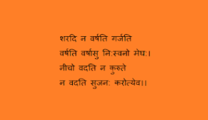 शरद ऋतूत मेघ नुसताच गरजतो, वर्ष ऋतूत मेघ गरजत नाहीत तर बरसतो, दुष्ट व्यक्ती सतत बडबडतात काही करीत नाहीत. सज्जन बोलत नाहीत तर करून दाखवतात.