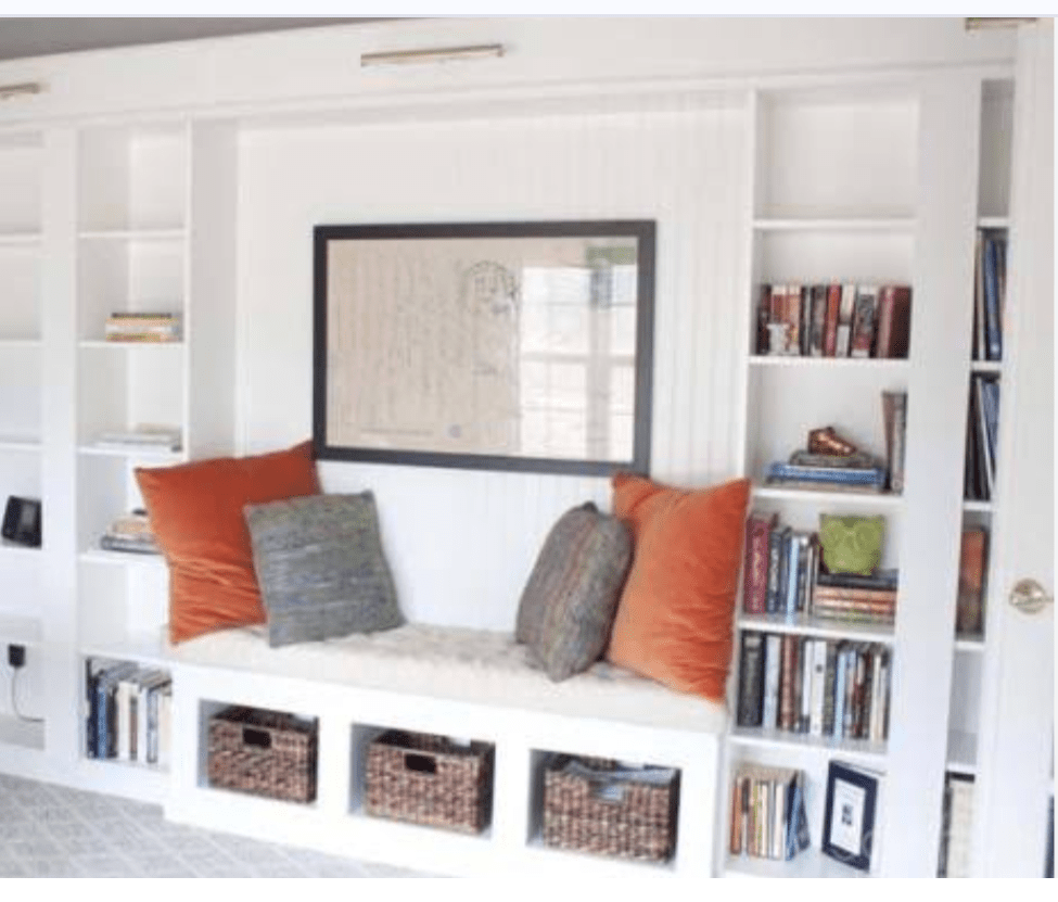 Thanks to IKEA, this one is good for organized book storage and look. Not sure about seating space though.
