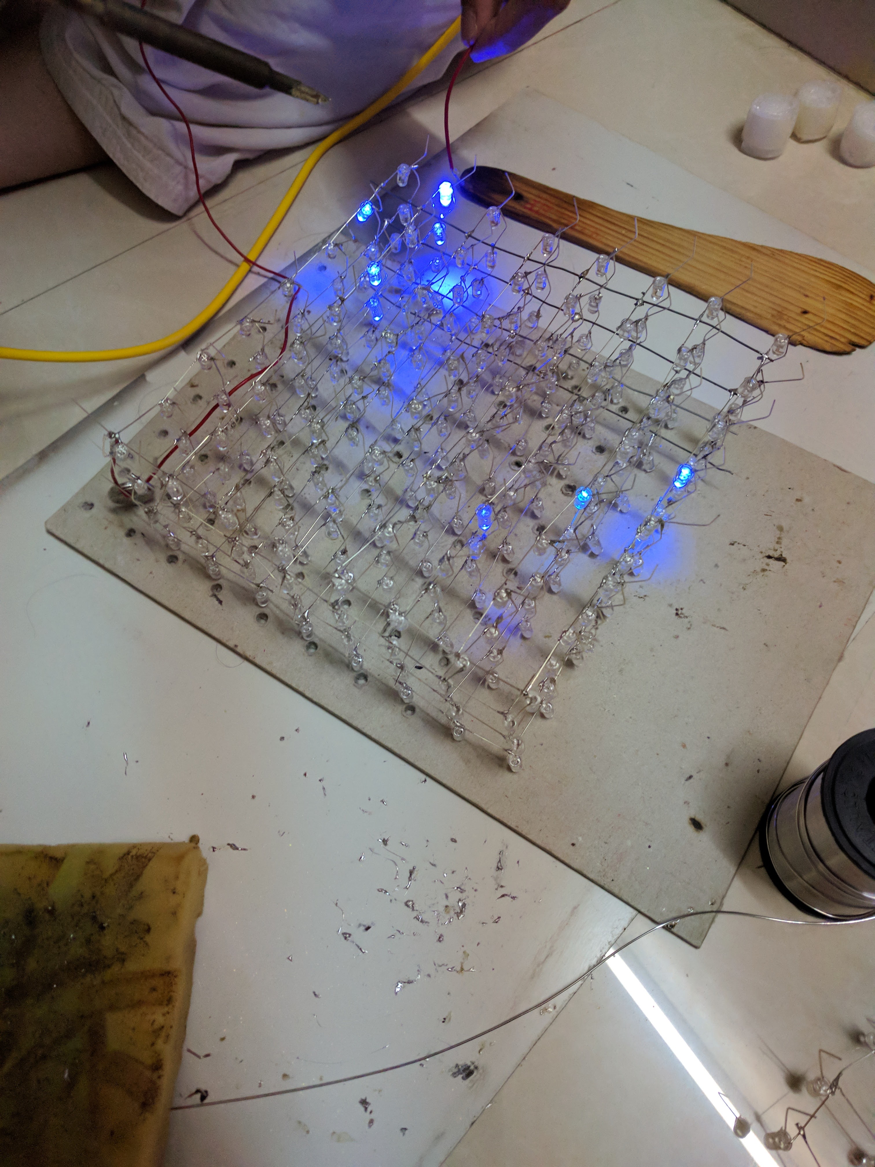 We started by sourcing the LEDs—81 per layer. Each one was carefully checked, ensuring they worked before we moved ahead. Then came the real task: connecting them. Layer by layer, we soldered, building up what we thought would be a beautiful programmed display.