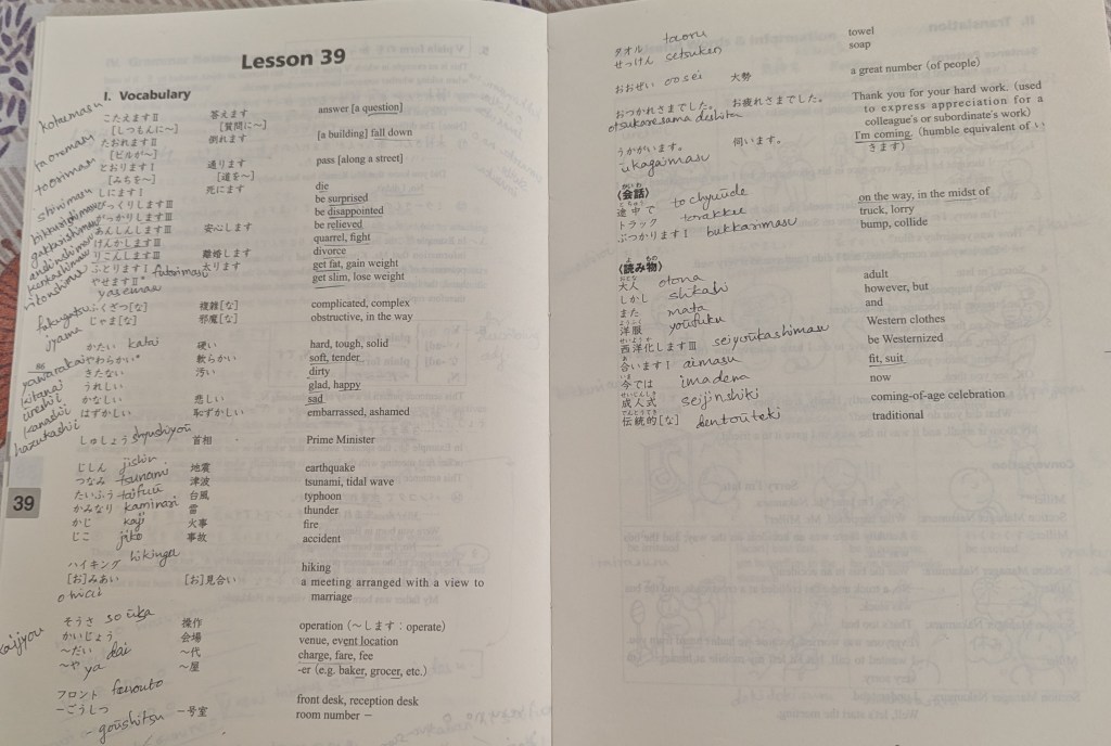 Time being working on JLPT N4 exam so, next chapter 39,